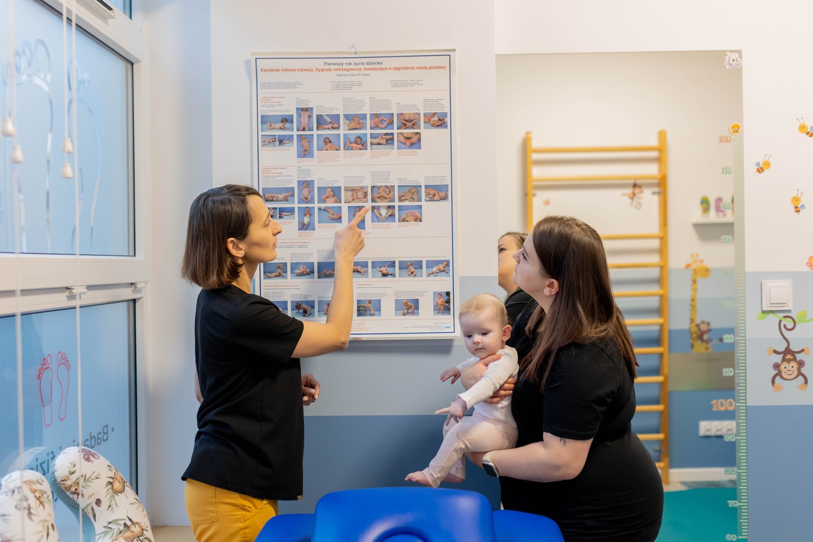 dokładnie oceniamy rozwój niemowlęcia i jego reakcje ruchowe,